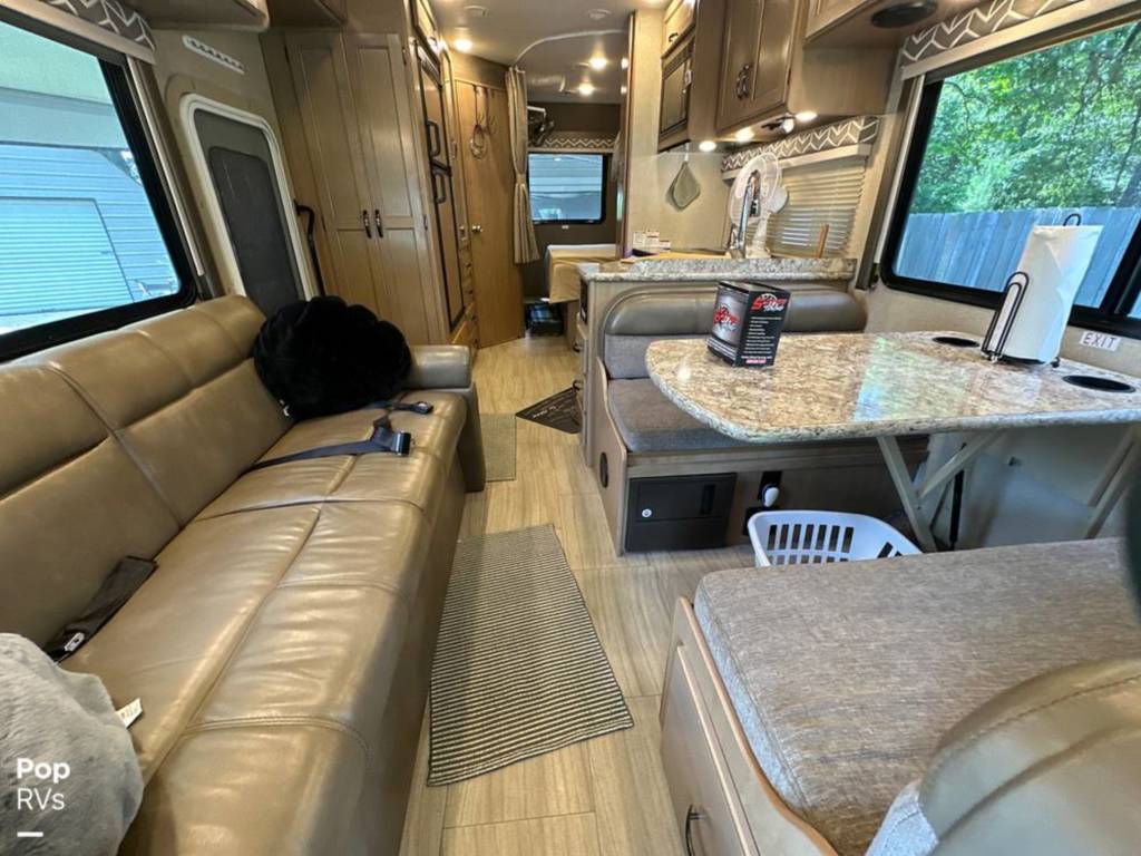 One of the quitest RVs to drive around. This RV has been built with noise reducers and is very quite while you enjoy long cross country drives. class C motorhome. Spacious floorplan. Great for small families. Sleeps 5-6. Queen bed in the rear, over cab bunk and the dinnet convert to beds as well.
