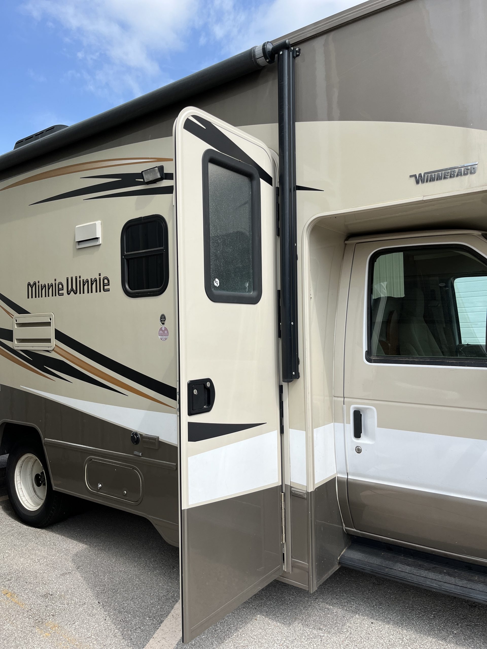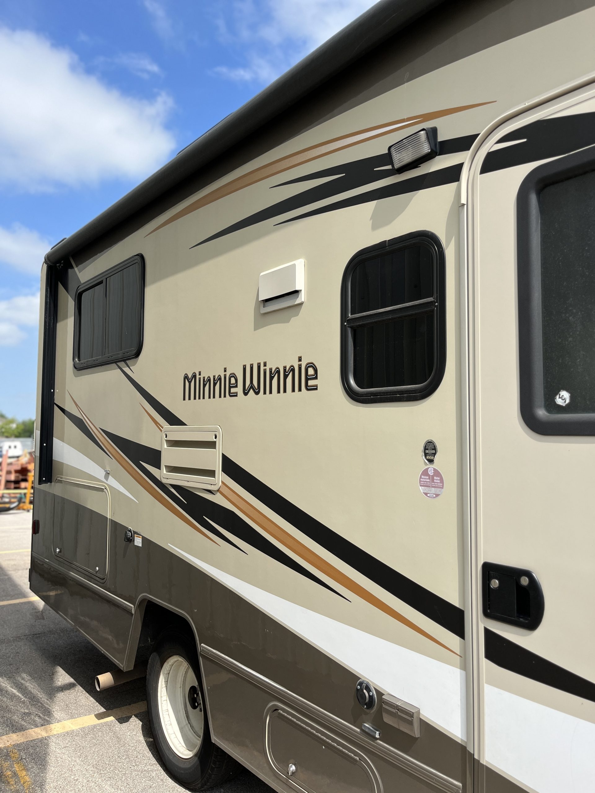 With each model you can enjoy the time that it takes to get to your destination as well as the fun that awaits you. You will find a Ford E350 or a Ford E450 chassis depending on the unit, both with 305 HP. Inside there is easy to clean vinyl flooring throughout, a USB charger near the dinette and in the bedroom, as well as a 32″ HDTV with DVD player for movie nights.  All of your outdoor gear can easily be stowed in the large lighted trunk storage compartment. There are several optional package upgrades and options available to help you customize the perfect family-friendly coach. What are you waiting for? Now is the time to choose your Minnie Winnie class C gas motorhome by Winnebago and let the fun begin!