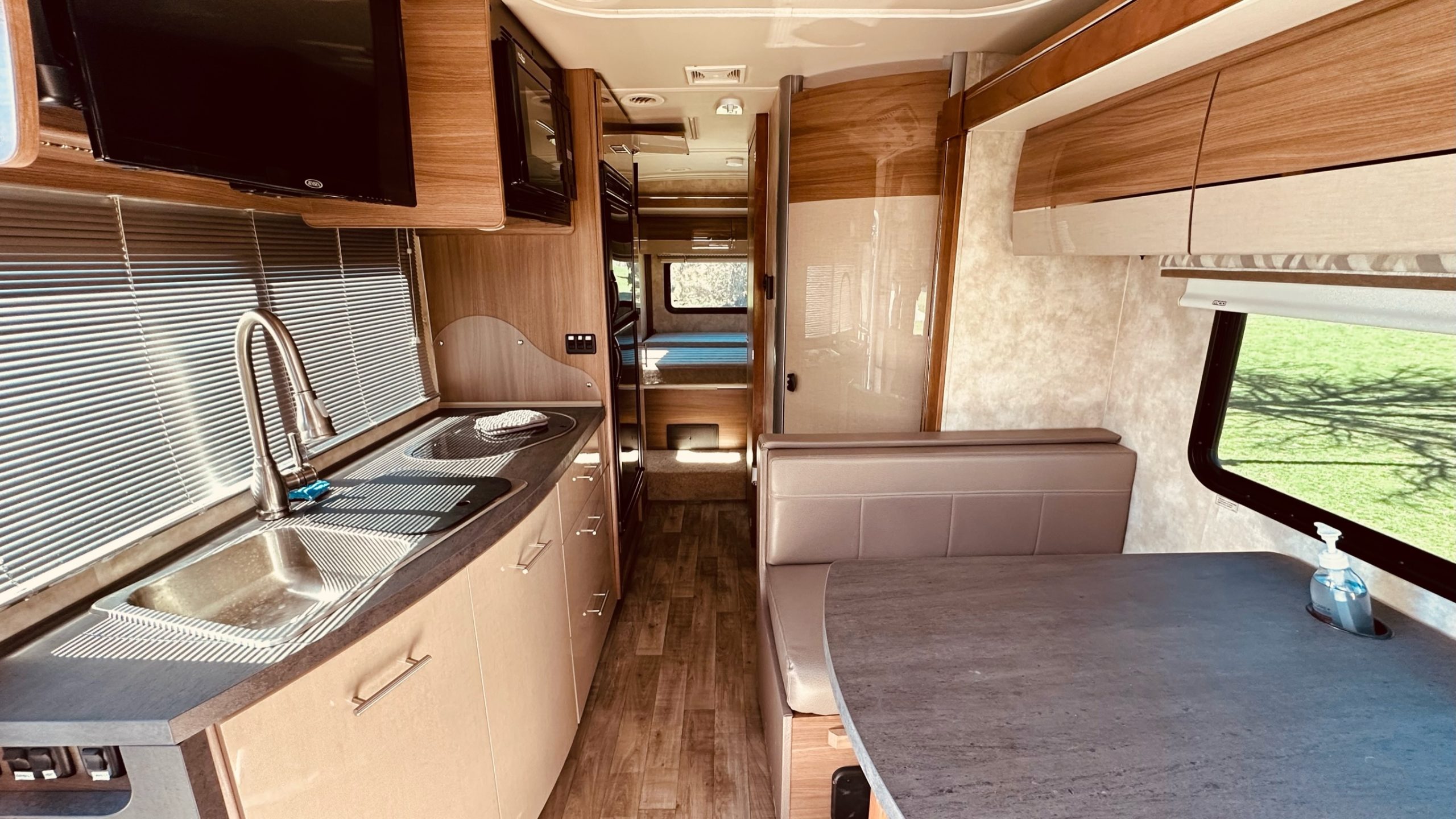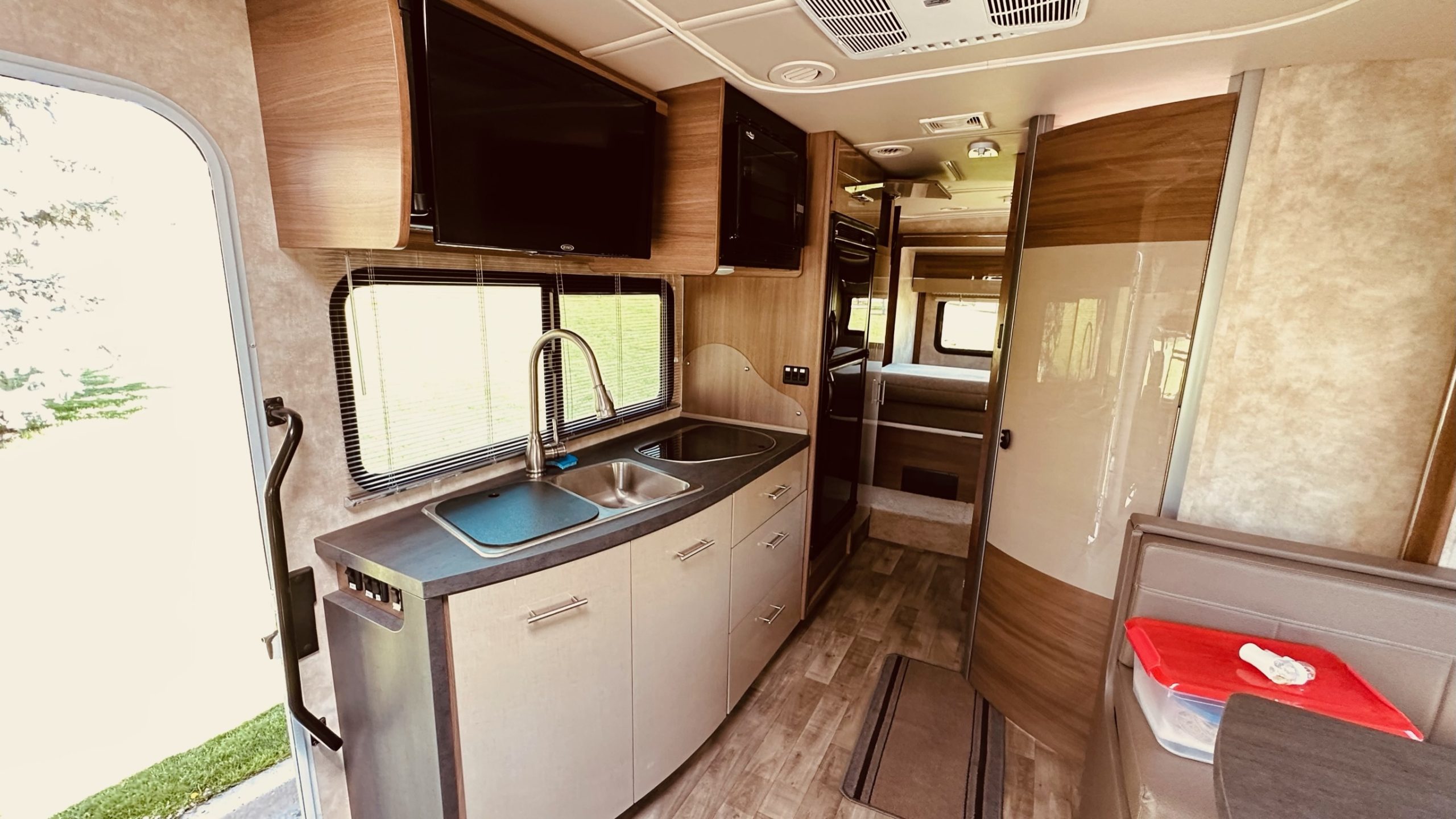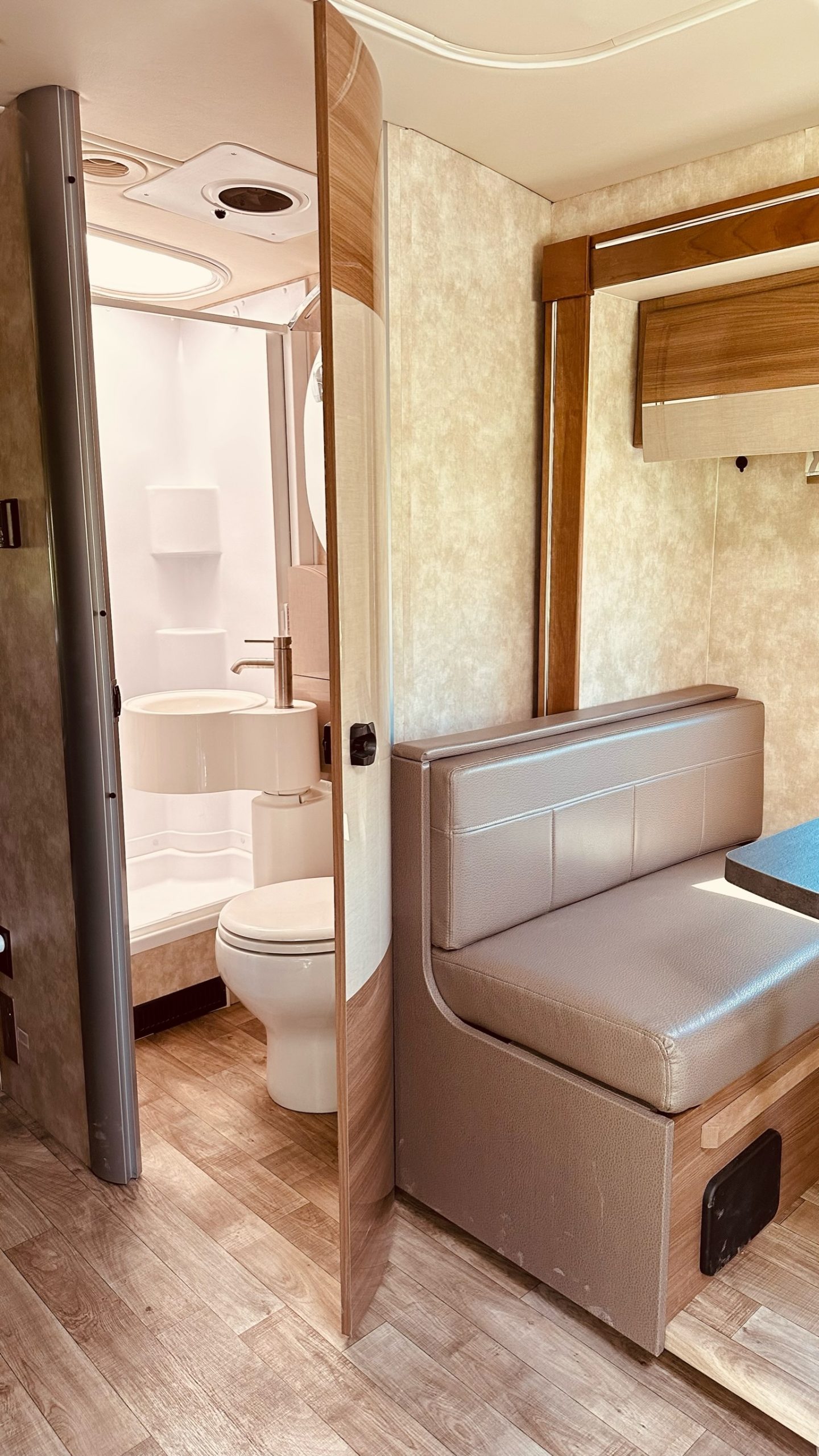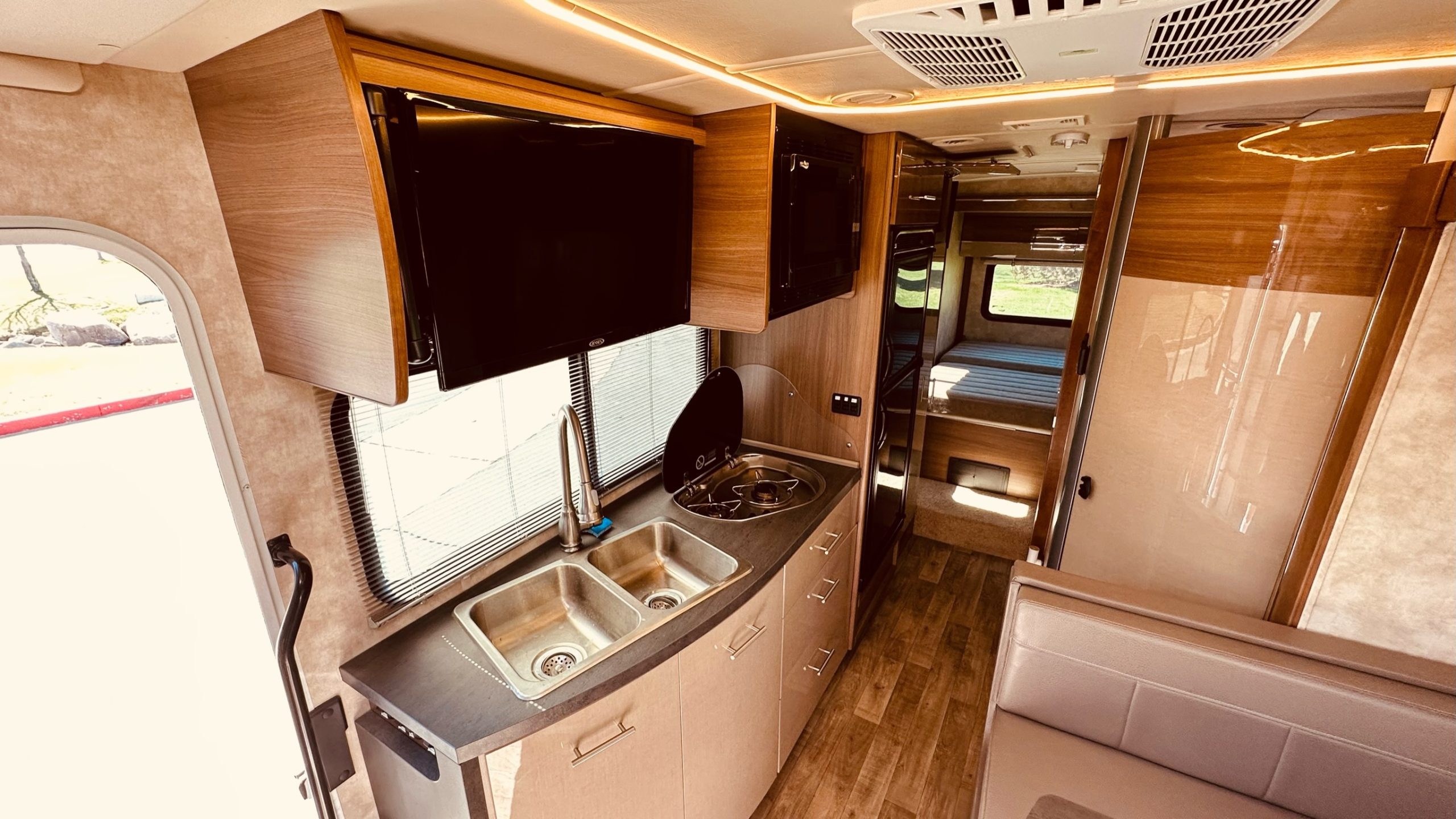 Winnebago Class C RV VIEW 24G is top of the line diesel class C has all the features of a large RV in a compact size and well-crafted elegant interior. Easy to drive & park and amazing gas mileage around 16 mpg! Sleeps 6. Fully equipped kitchen with large bathroom/shower, private rear bedroom with slide out, automatic leveling jacks, in-motion satellite tv, bike rack (optional), microwave/convection oven, 3 burner stove, fridge with freezer and large holding tanks. Double bunkbed above the driver. Dinette slide out allows for more space and additional sleeping area. Built-in LP generator, Furnace, A/C, on demand hot water heater. 2 TV screens, stereo LED lit power awning