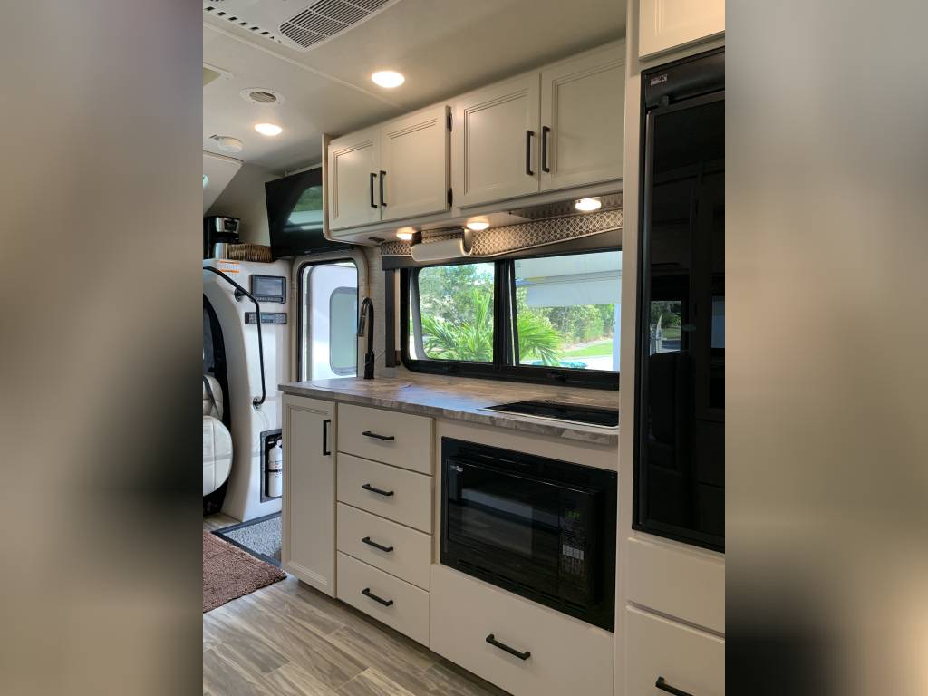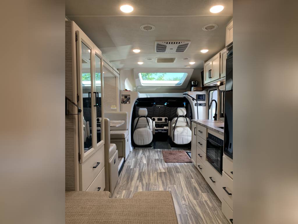 This motorhome is well designed, comfortable, spacious, has plenty of storage space, towing capability, and is easy to drive and maneuver. This coach also gets surprisingly good gas mileage. We have averaged around 15 mpg during our journeys.We have maintained the vehicle in great condition; recently had the 20000-mile service completed, all recalls repaired, recently detailed, and kept covered, including wheel and tire covers, when not in use.The RV is completely outfitted and ready to hit the road. It is equipped with a Cummins Onan 3.6 kw propane generator, AC / heat pump, furnace, vent fans, Winegard (Antenna, Wi-Fi extender, 4G LTE, Connect 2.0), 3-way 5.5 cu. ft. fridge, convection microwave, two-burner gas cooktop, tankless hot water heater, bathroom with separate shower (not a wet bath), powered 15.5’ patio awning with wind sensor, outdoor shower, and exterior gas connection for grill. In addition, we are including all the extra equipment necessary for comfortable, carefree camping—power cable extension, electrical adapters, surge protector, circuit tested, drinking water hoses, water filter, water pressure regulator, bike rack, etc.All systems on the RV can be controlled with the RVMaster app on your smart phone and/or the included tablet.