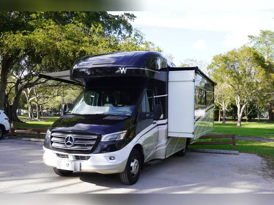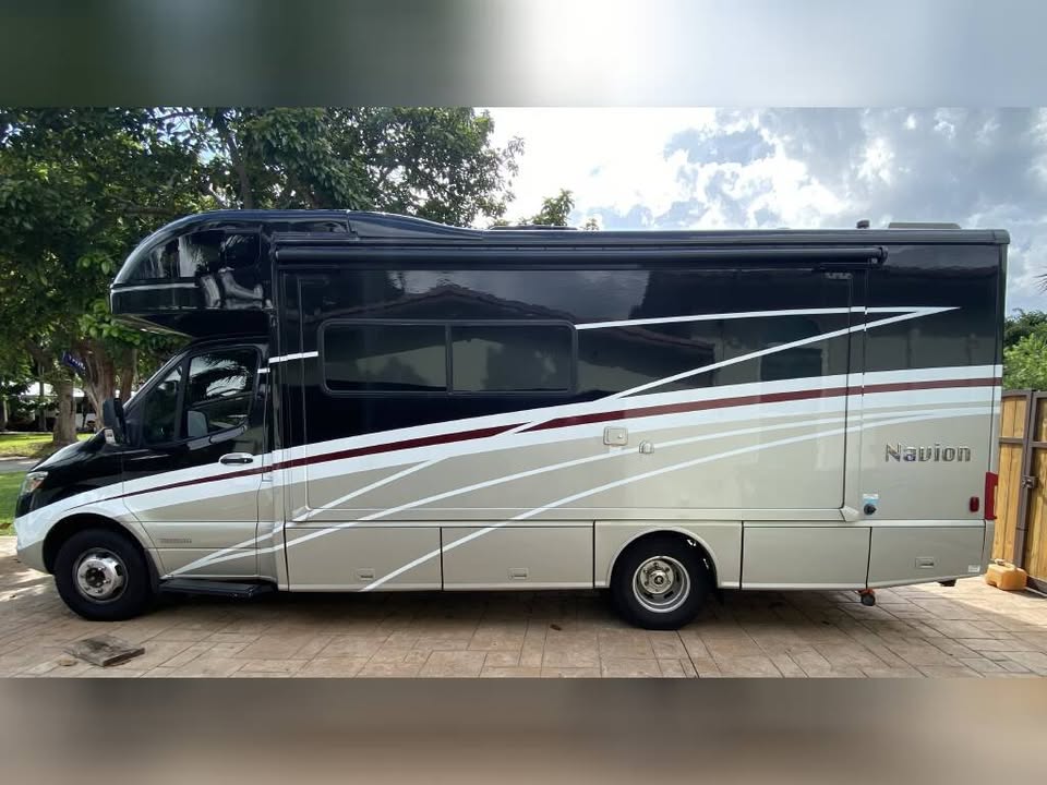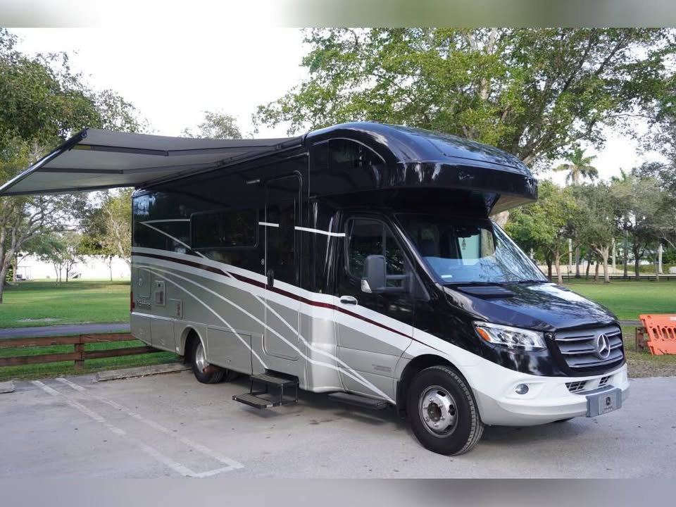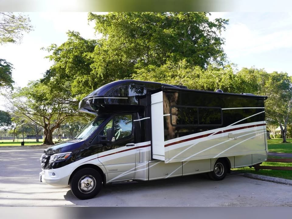 This Class C sleeps 6 people and is available for Rental. Specs: Length: 24 | Slide Outs: 1 | Sleep Number: 6 | Chassis: Mercedes-Benz Sprinter | Fuel: Diesel | Exterior Height: 11.00′ | Fresh Water Tank: 30.0 gal | Black Water Tank: 41.0 gal Also Includes: MICROWAVE DRIVER’S DOOR DIESEL GENERATOR REAR BATH/SHOWER BOOTH DINETTE ELECTRIC LEVELING SYSTEM CRUISE CONTROL REAR CAMERA WINDOW SUNSCREENS SPARE TIRE ALUMINUM WHEELS DUCTED AC OVEN FIBERGLASS EXTERIOR MOTOR HOME JACKS PATIO AWNING 1 SLIDE OUT TILT STEERING WHEEL POWER WINDOWS & LOCKS LEATHER FRONT SEATS EXHAUST BRAKE DOUBLE DOOR REFRIGERATOR 3 BURNER STOVE HIDE-A-BED SOFA OUTSIDE SHOWER