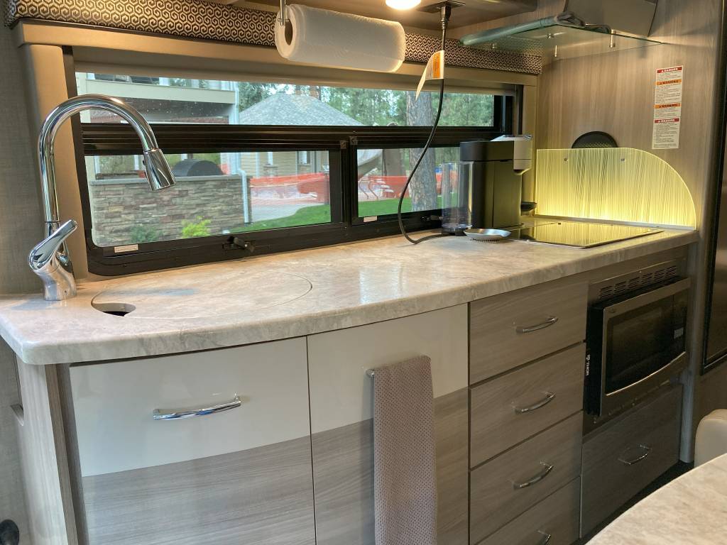 Our Thor Delano was the perfect vehicle for our family adventure. At 25ft long, we had no difficulty driving, maneuvering, or parking the RV, which was a relief for people with no RV experience. It very comfortably slept all four of us and we had an abundance of storage space for upwards of 2-3 weeks on the road at a time. The Mercedes Sprinter chassis is very modern with comfortable seats, adaptive cruise control, lane departure warning, cross wind assist, and an up-to-date MBUX infotainment system.