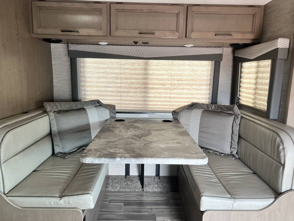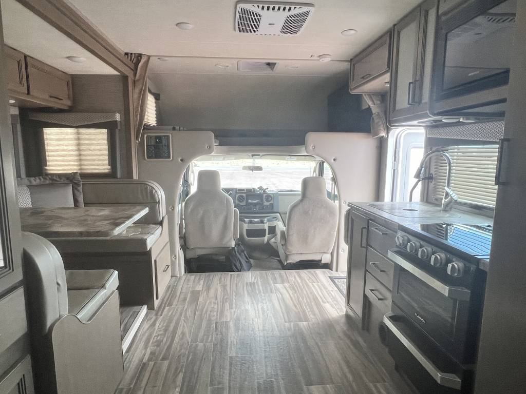 Each one of these Four Winds Class C gas motorhomes are equipped with everything you will want or need! Powered easily by a 7.3L Ford V8 engine with a 8,000 lb. hitch, and constructed with a welded tubular aluminum roof and sidewall cage makes it easy to head out on a great adventure. The large touchscreen dash with navigation and SiriusXM satellite radio with Bluetooth connectivity lets you play your favorite songs without getting lost. These models are tech-filled with a Winegard ConnecT 2.0 that works as your WiFi router, 4G hotspot, and TV antenna. You will not only have a comfortable and convenient interior living space, but also a dreamy outdoor living space with the power patio awning with LED lighting, a MEGA-Storage compartment, and an optional 32″ TV on a swivel bracket with a Bluetooth sound bar and radio. Don’t wait any longer, come choose the model that best suits you today!