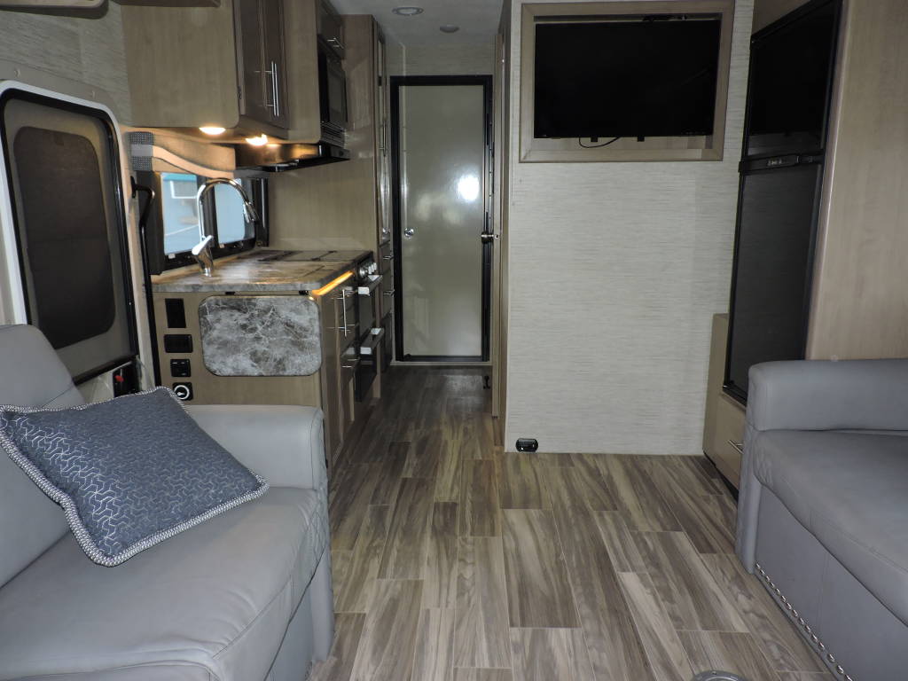 Wheelbase 219″, GVWR 14,500 lbs., GCWR 22,000 lbs., Hitch Rate 8,000 lbs., Tongue Weight 800 lbs., Fuel Capacity 55 gals., Overall Length 31’2″, Overall Height w/ AC 10’10”, Overall Width 99″, Interior Overall Height 84″, Fresh Water Tank 40 gals., Gray Water Tank 34 gals., Black Water Tank 30 gals., TANKLESS Hot water heater.