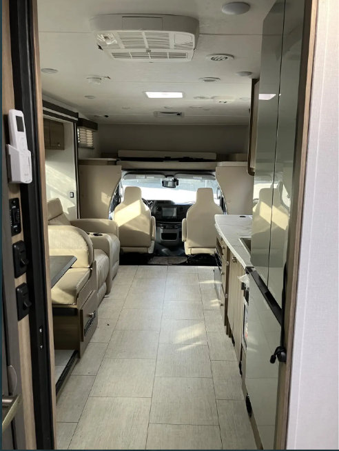 This motorhome comfortably sleeps up to 8 people, making it perfect for families, friends’ getaways, or multi-generation trips. Enjoy a luxurious master bedroom with a queen bed, convertible dinette, comfortable sofa bed, and a loft bunk — giving everyone their own space to stretch out and rest up for tomorrow’s journey.