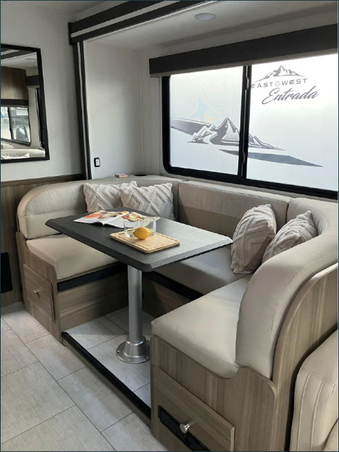 Extend your living space with the large power awning, perfect for shady afternoons, sunset meals, or stargazing nights. Sit back in the shade with your favorite drink, share a laugh, or plan your next adventure—this RV turns campsites into cozy retreats.