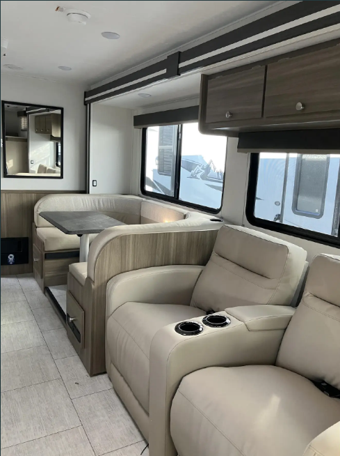 Step inside and immediately feel at ease in the spacious, open-concept interior. The Freelander 31MB lives large, with generous living space that feels more like a cozy suite than an RV. Plush seating, warm finishes, and smart layout make relaxing after a day of adventure a breeze.