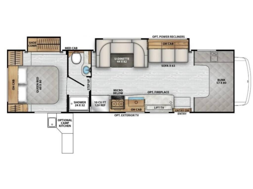 The bathroom with shower means no stops in crowded rest areas — just fresh, clean comfort whenever you need it. Generous storage throughout keeps your gear organized and easy to reach.