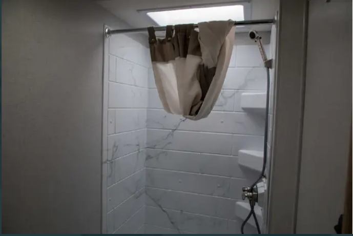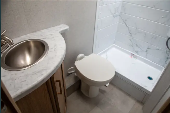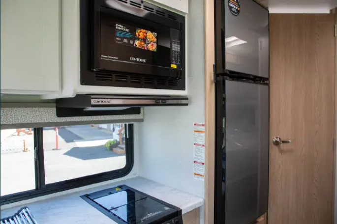 The fully equipped kitchen is ready for everything from quick breakfasts to cozy dinners, featuring a refrigerator, microwave, stovetop, sink, and generous storage. Brew your morning coffee, cook your favorite meals, and enjoy them together at the dinette—because the best moments happen around the table. The private bathroom with shower adds an extra layer of comfort, giving you the freedom to travel at your own pace.